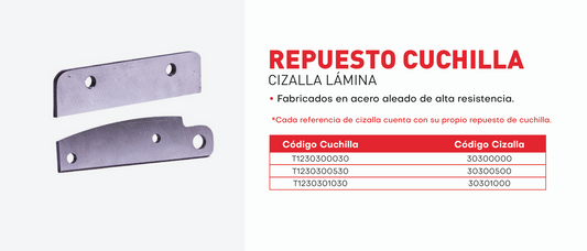 T1230301030 Cuchilla para cizalla de lamina Herragro modelo 30301000 - 3010 juego