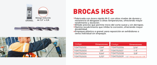 T1347752509 Broca HSS 1/2" con reducción a 3/8" Herragro