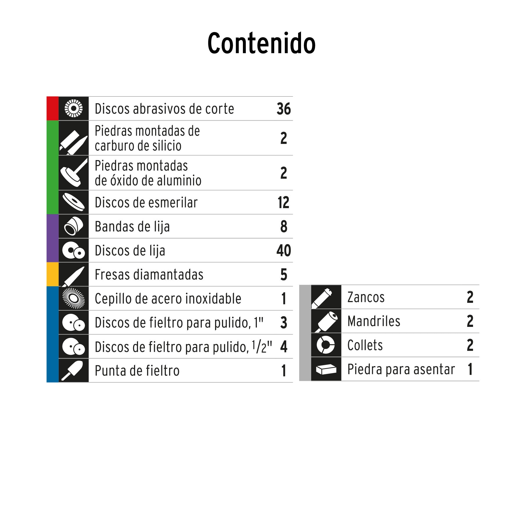 - Ideal para detalles de grabado, corte, desbaste, afilado, limpieza y pulido