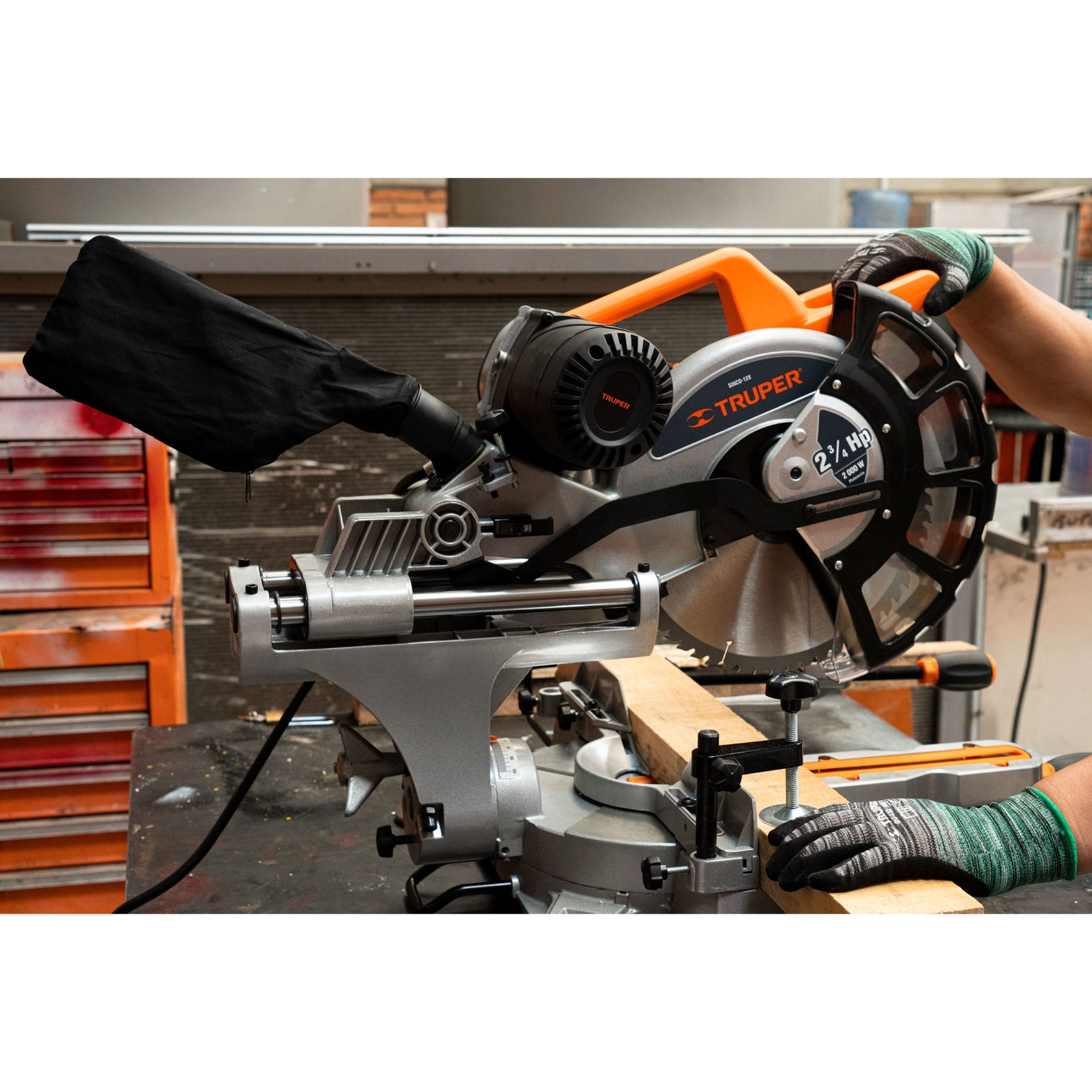 SINCO-12X Sierra de inglete para corte en madera, 12", telescópica