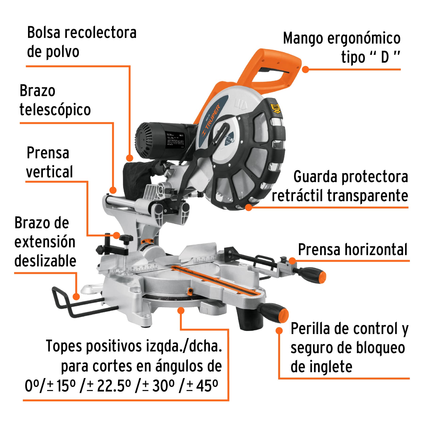 - Cortes en bisel hasta 45° (izquierdo y derecho)