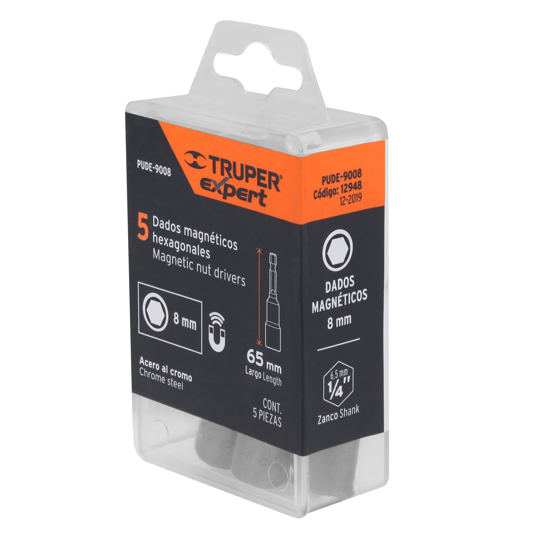 PUDE-9008 Juego de dados magnéticos, 8 mm, 5 piezas, Truper Expert