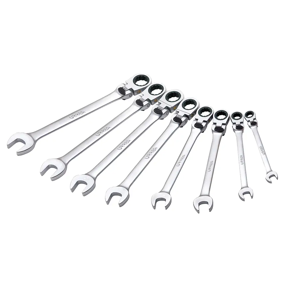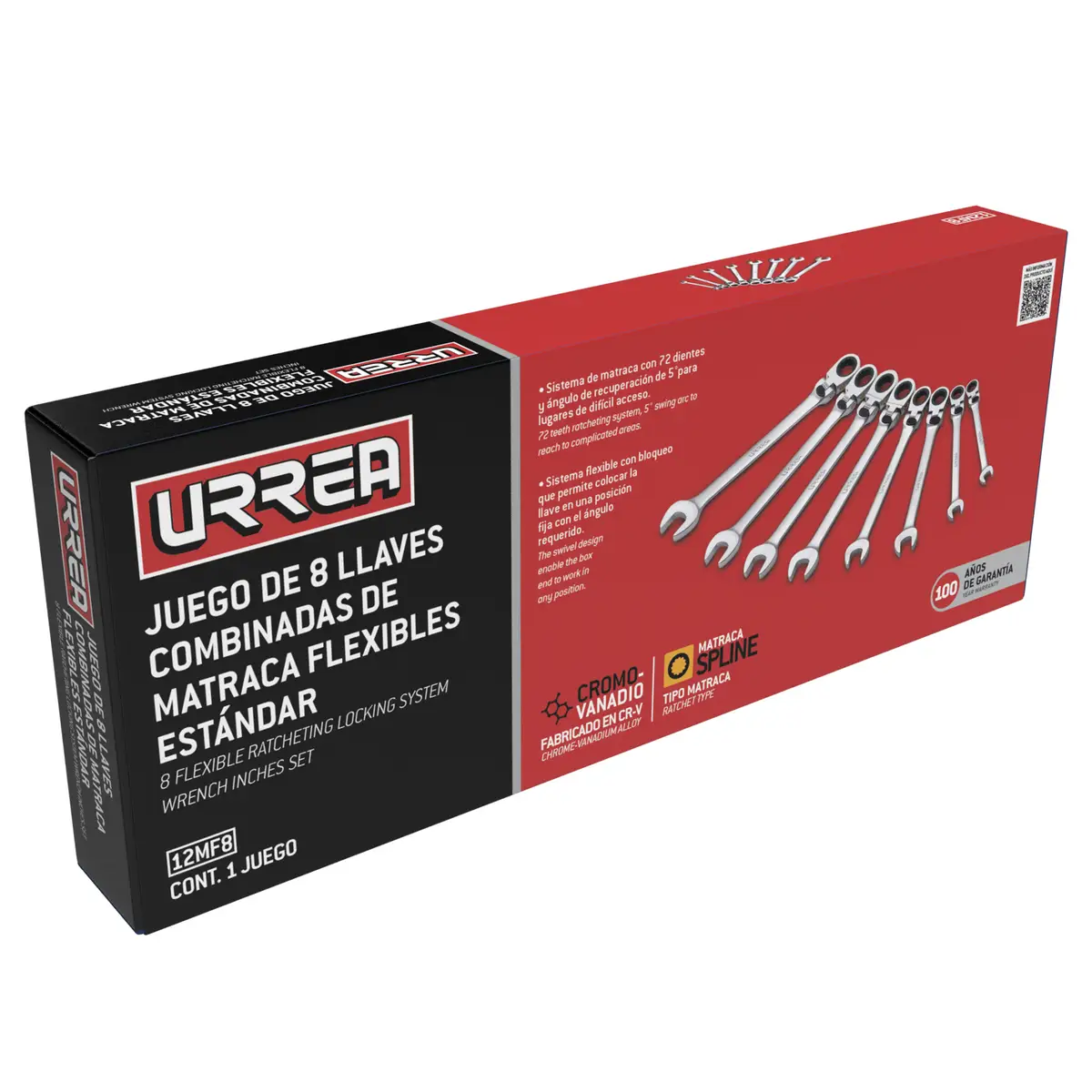 12MF8 Juego de llaves Spline pulido espejo con ratchet escualizable 9 piezas 5/16" a 3/4", uso pesado, Urrea