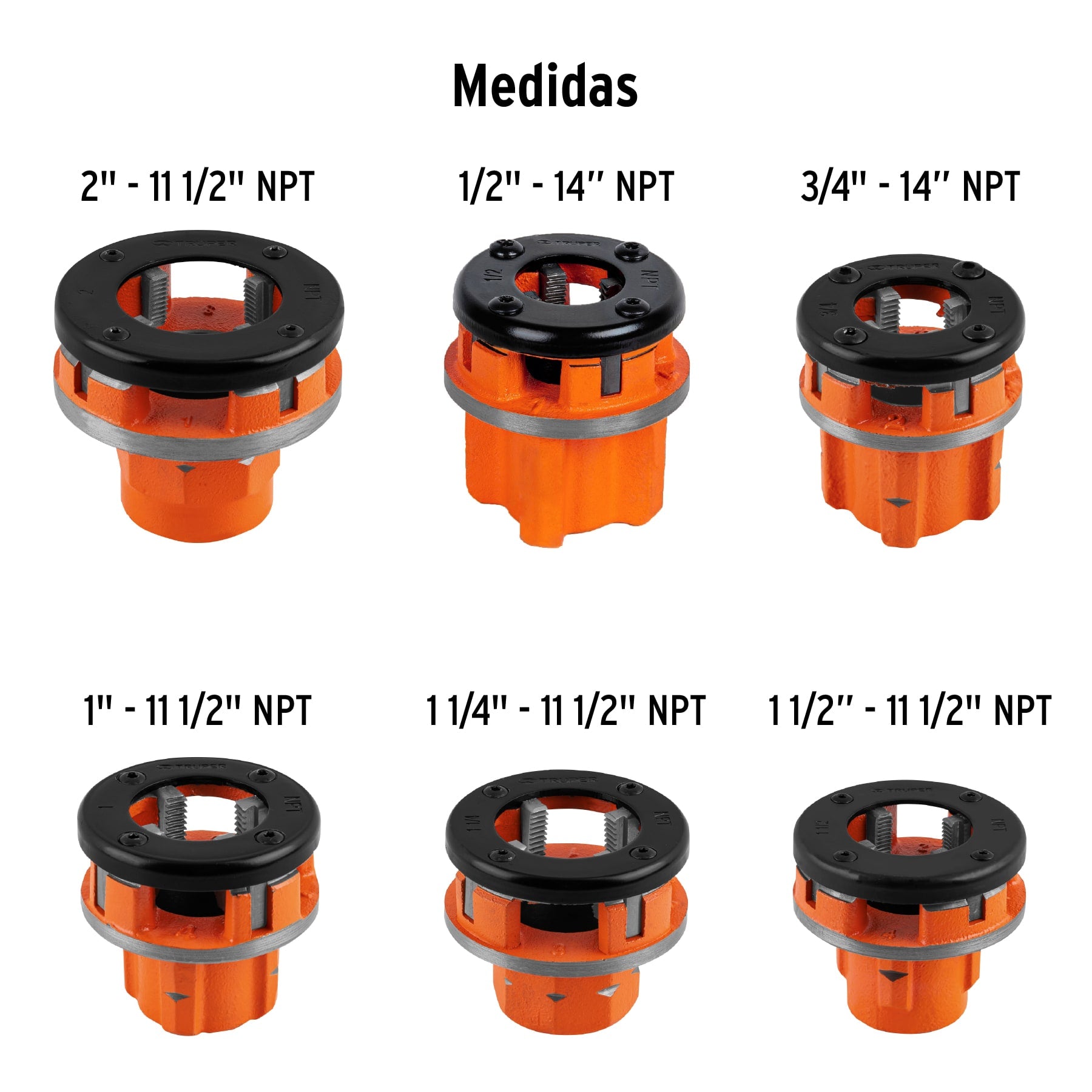 Capacidad de roscado: 1/2", 3/4", 1", 1 1/4", 1 1/2" y 2"