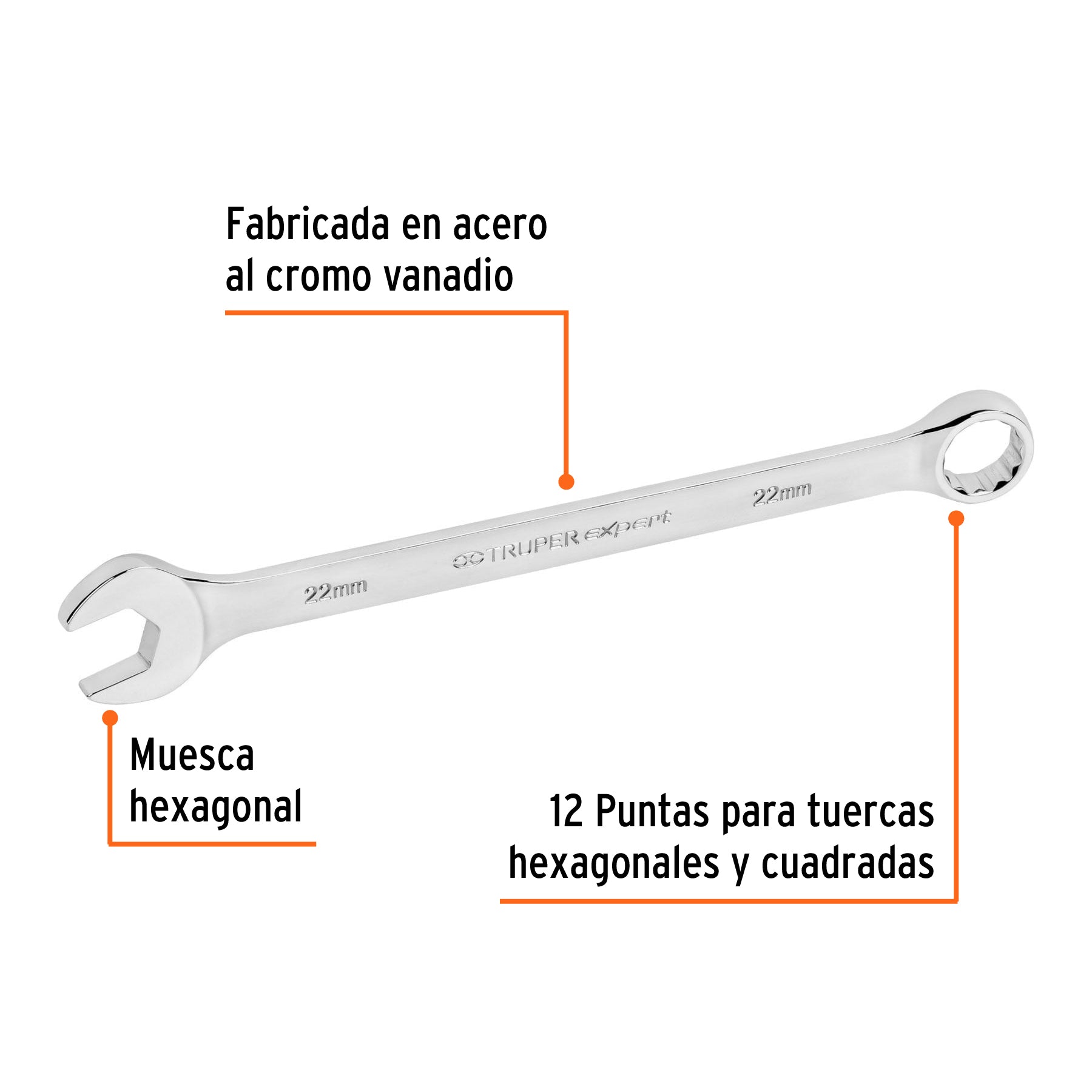 LL-2022M Llave mixta extralarga, métrica, 22 x 319 mm, Truper Expert
