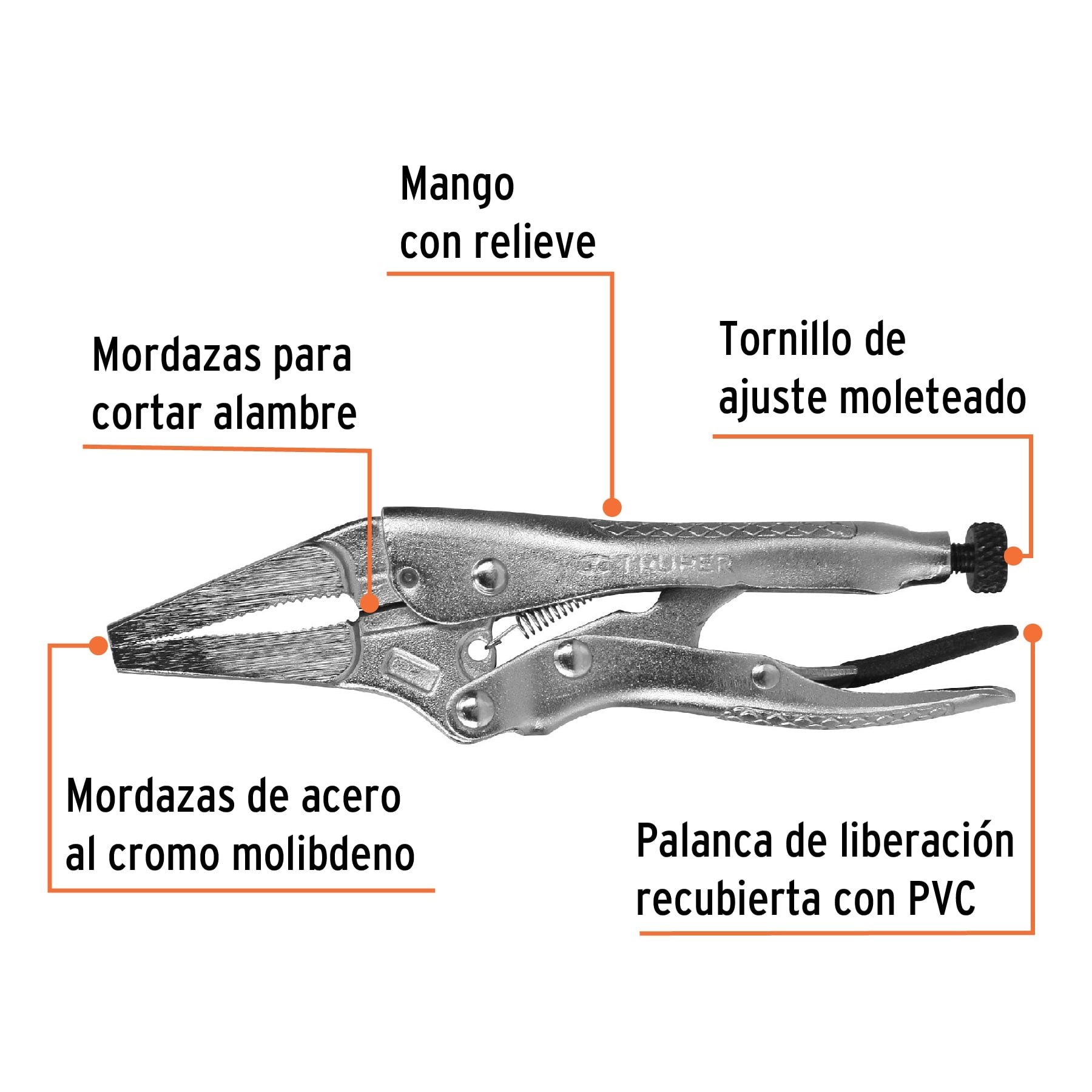 - Mordazas rectas de acero al cromo molibdeno para mayor durabilidad y agarre
