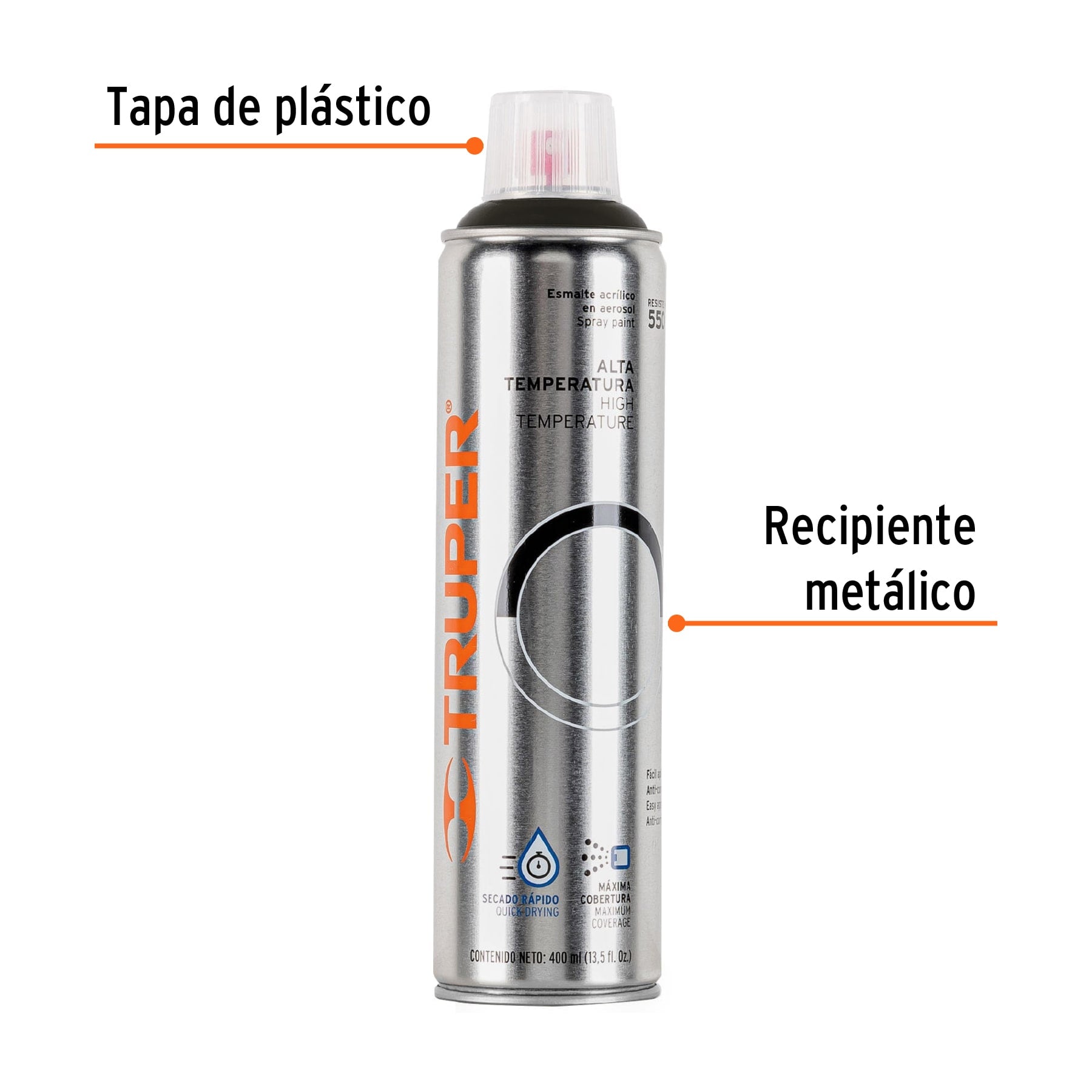 - Ideal para interiores y exteriores, en estufas, asadores, hornos, tuberías que transportan vapor, maquinaria y superficies metálicas que manejan altas temperaturas hasta 550° C
