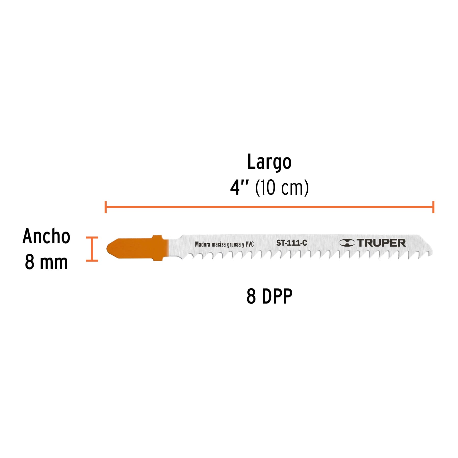 ST-111-C Segueta caladora, cortes rectos en madera, zanco t, 8 dpp