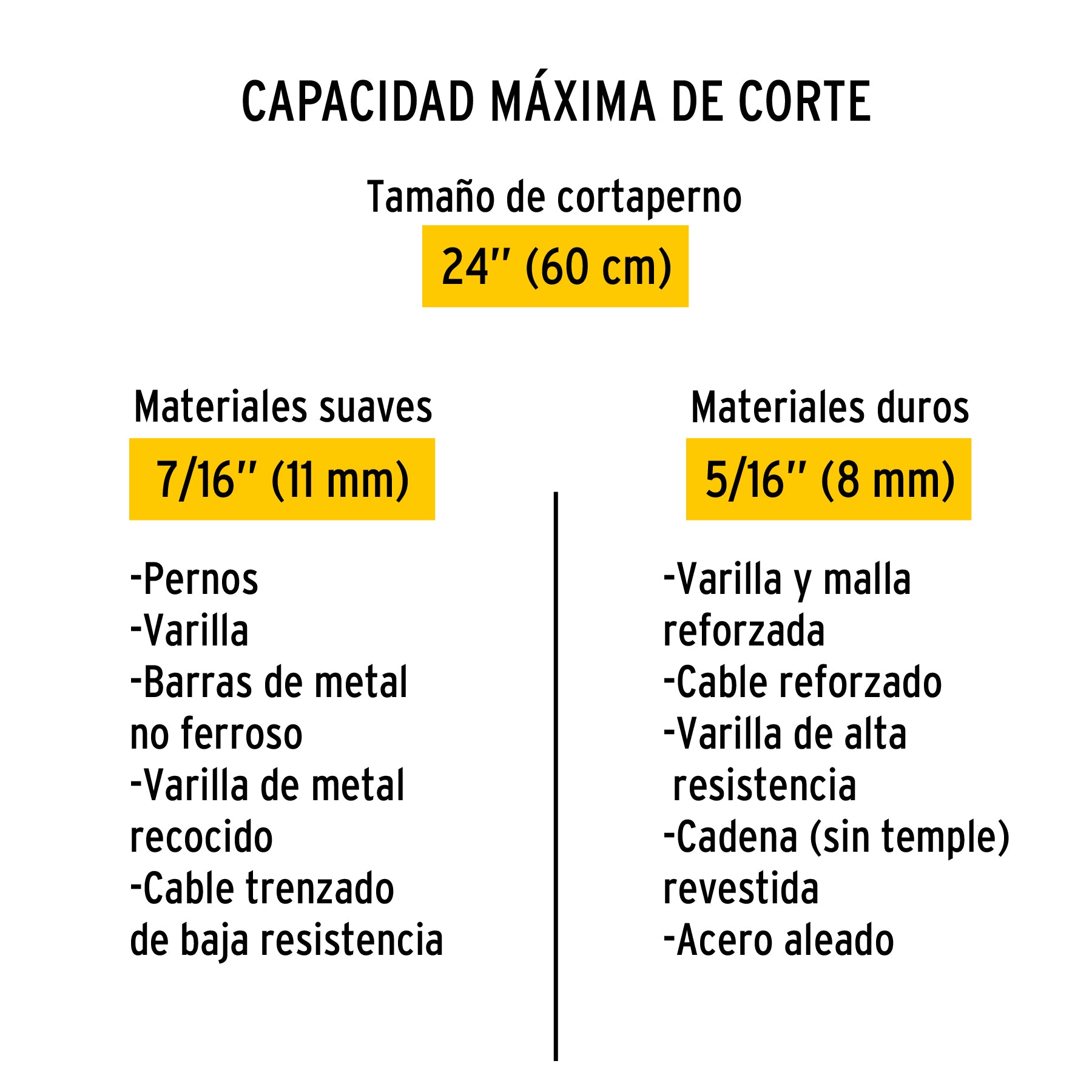 Capacidad máxima de corte: Materiales suaves 7/16" (11 mm) | Materiales duros 5/16" (8 mm)