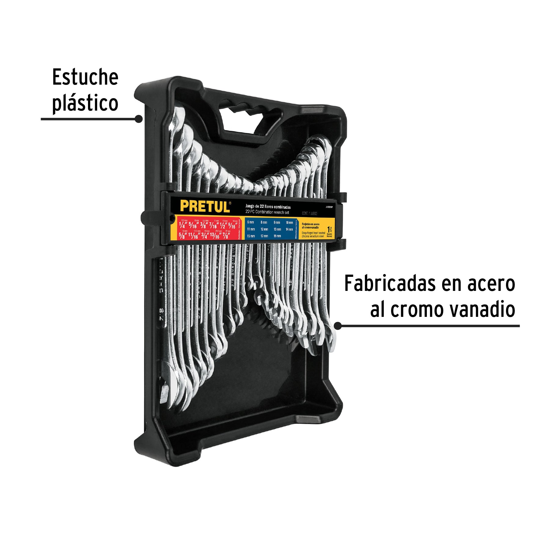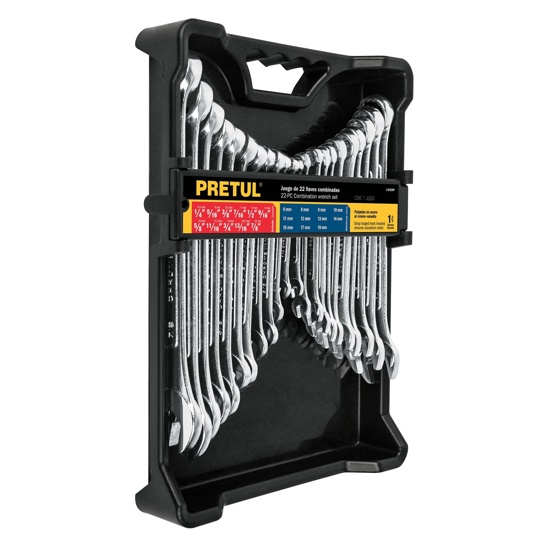 J-2022MP Juego de llaves combinadas, 22 piezas, std y mm, Pretul