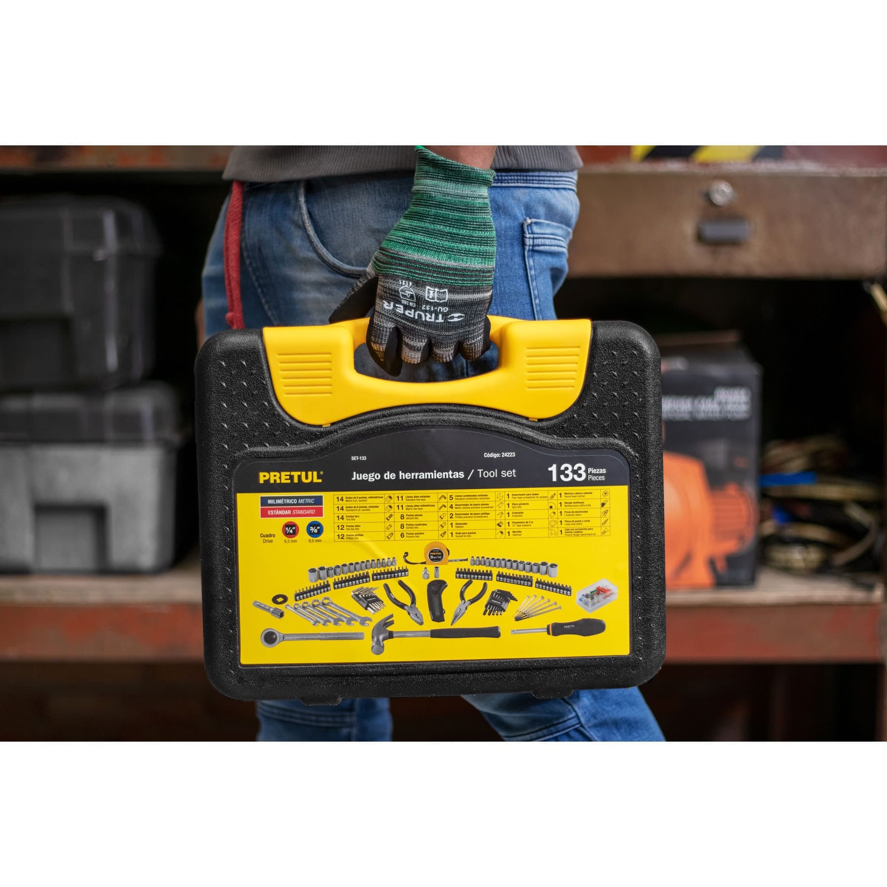 SET-133 Juego de herramientas para mecánico, 133 piezas, Pretul