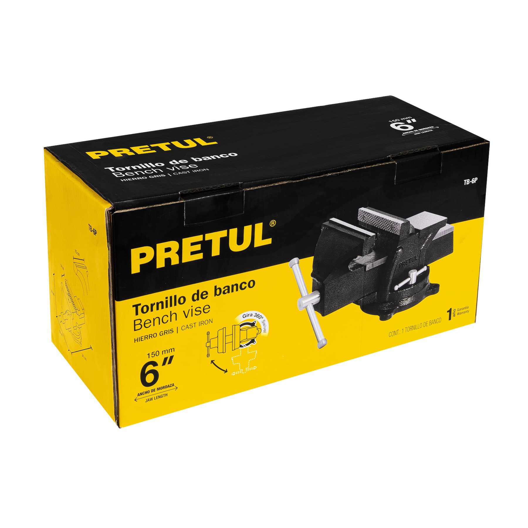 TB-6P Prensa de banco, 6", hierro, Pretul