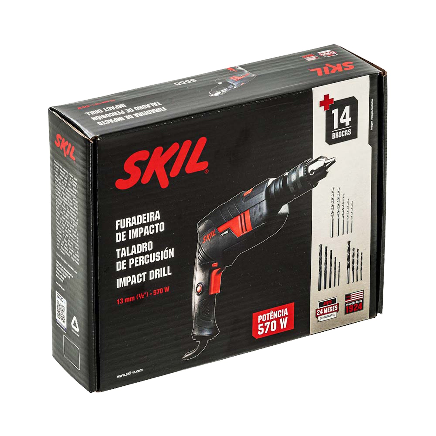 ¡El Taladro percutor Skil 6555 posee 570 Watts de potencia, es súper liviano y compacto! El Mandril metálico de 1/2" (13 milímetros) es robusto para las aplicaciones diarias. Su motor es totalmente con rodamiento para mayor durabilidad. Además de esto, posee interruptor de velocidad variable - electrónico - para que usted pueda realizar perforaciones y atornillados en los más diversos materiales, por ser reversible permite también desatornillados. El Taladro percutor Skil 6555 en este modelo es suministrado con 1 Llave de mandril, 1 Empuñadura auxiliar, 1 Limitador de profundidad, 5 Brocas para hormigón, 5 Brocas para Metal, 4 Brocas para Madera en Caja de cartón. Es indicada para el profesional autónomo y cuenta con 2 años de garantía.