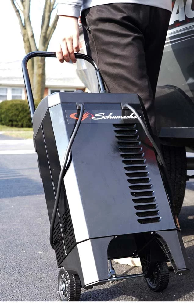 When life calls for a battery charger users can trust, Schumacher Electric is the one professionals choose. The SC1446 is a manually operated battery charger and engine starter built for rugged use, and its retractable handle and compact wheels make it easy to store away for a big trip or out of the way in a busy auto shop. With 200 amps and 12 volts of power for starting engines and a power boost of up to 40 amps, even the largest vehicles will be on the road again in no time. For a routine battery charge, the SC1446 has ample power with outputs of 10 amps and 12 volts.