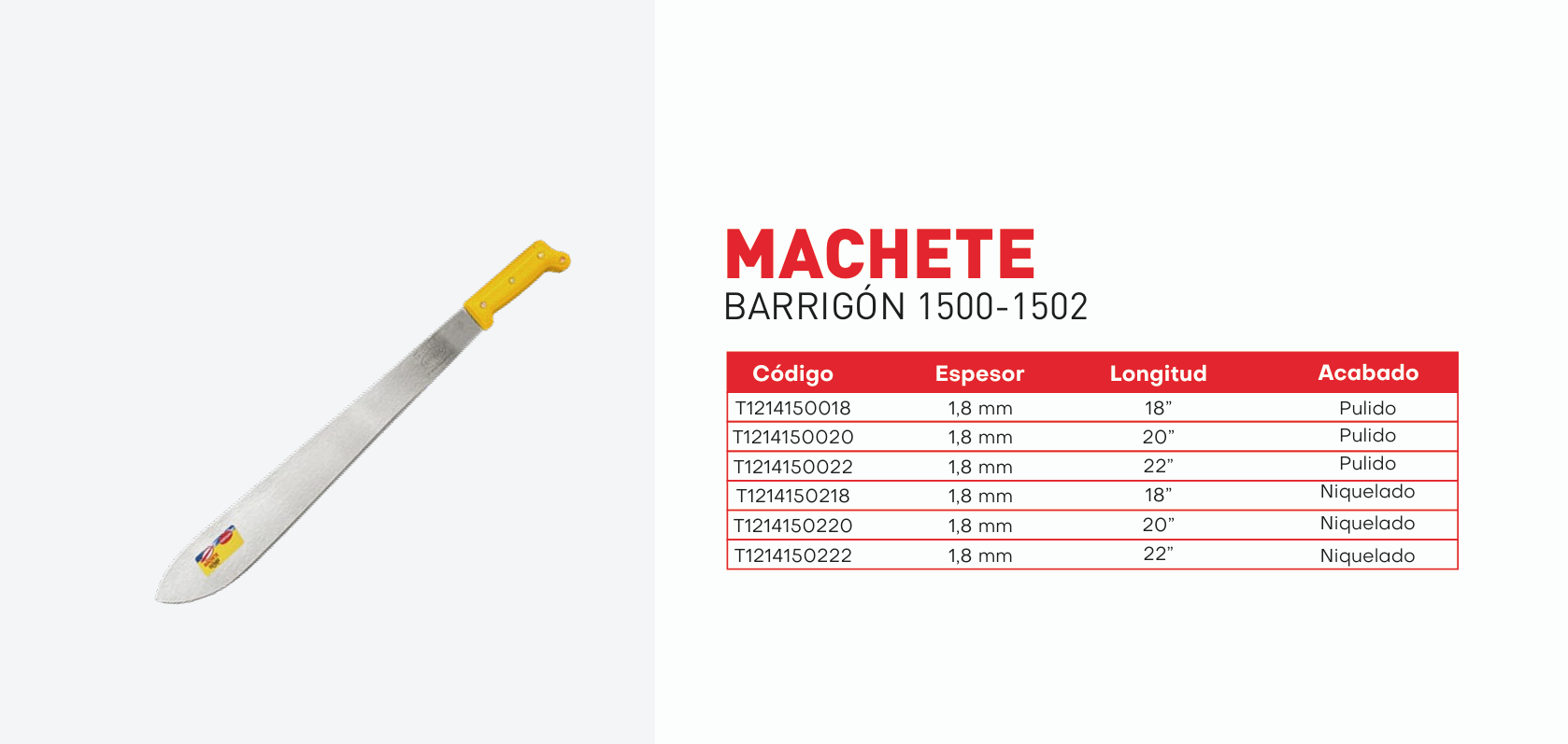 Machete barrigon 1500 22" pulido, T1214150022 Herragro